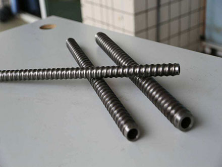 (2)將安裝有漲殼錨頭的桿體直接插入成孔底部,中空注漿錨桿如需加長(zhǎng),可用聯(lián)結(jié)套進(jìn)行聯(lián)結(jié)。